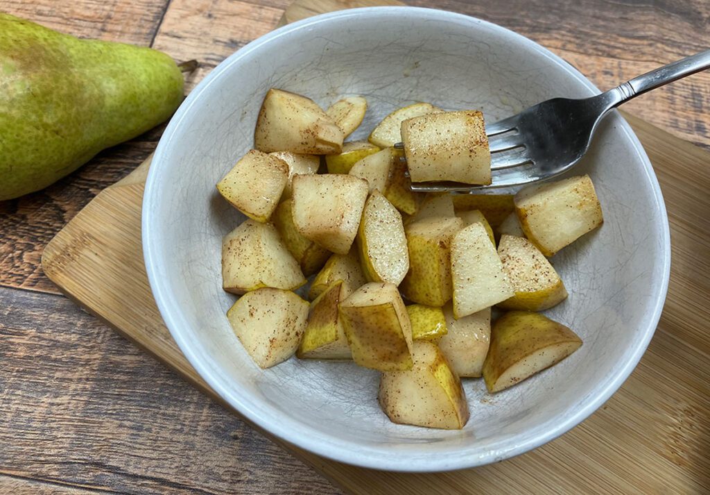Don’t worry if your pear is hard and unripe—that’s actually what inspired this recipe in the first place! The cooking process will soften it perfectly.
